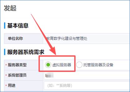 1、进入网上办事大厅,选择“虚拟或托管服务器申请”应用。