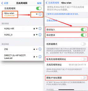 →按照图中提示,设置网络参数→在弹出的“登录Hjnu-wlan”网页中输入学号和密码(与网上办事大厅登录密码一样)→点击“连接Login”提示“欠费”→关闭WiFi;