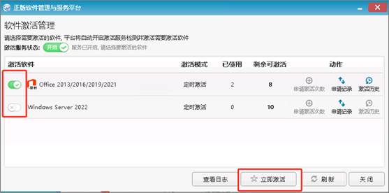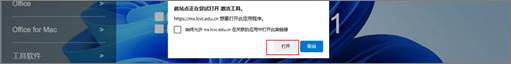 2、登录成功后,在浏览器弹窗点击“打开”→弹出软件激活管理窗口(默认Windows和Office分别可以激活10次);