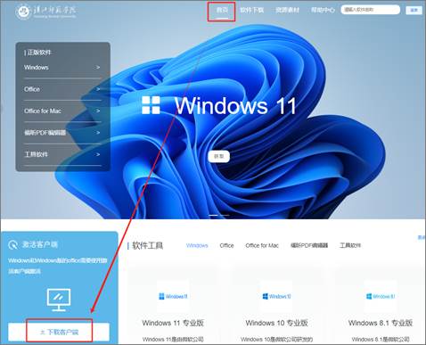浏览器访问https://kms.hjnu.edu.cn/:首页→点击“下载客户端”。(注:激活成功后,可保留或卸载该客户端)