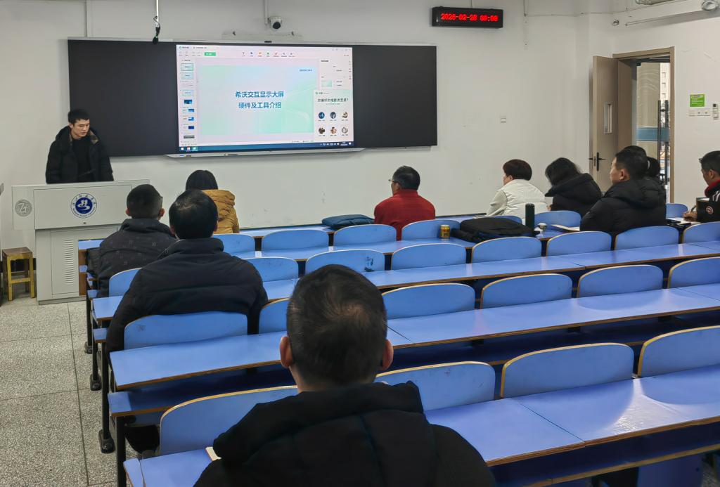 为帮助教师熟练掌握智慧黑板及各类多媒体教学设备操作方法,提升教学数字化应用能力,适配十堰校区新换装的智慧黑板教学需求,2026年2月28日,教育数字化建设与管理处组织开展多媒体教学数字化应用专项培训,培训分上下午场次进行,各二级学院相关授课教师按要求参训。本次培训特别邀请希沃公司专业培训师胡工现场授课指导。