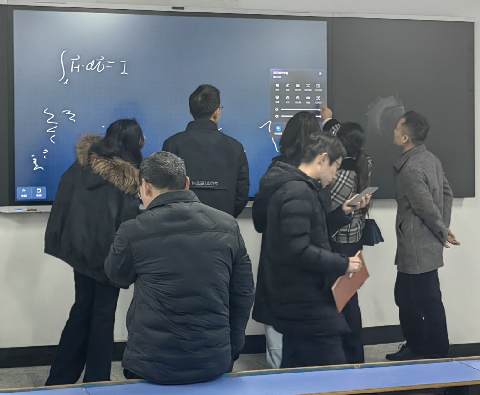 培训的答疑与实操演练环节,参训教师结合日常教学中遇到的设备使用问题积极提问,培训人员逐一耐心解答,现场指导教师进行智慧黑板实操演练,教师们主动参与、动手实践,及时消化培训内容,现场学习氛围浓厚。